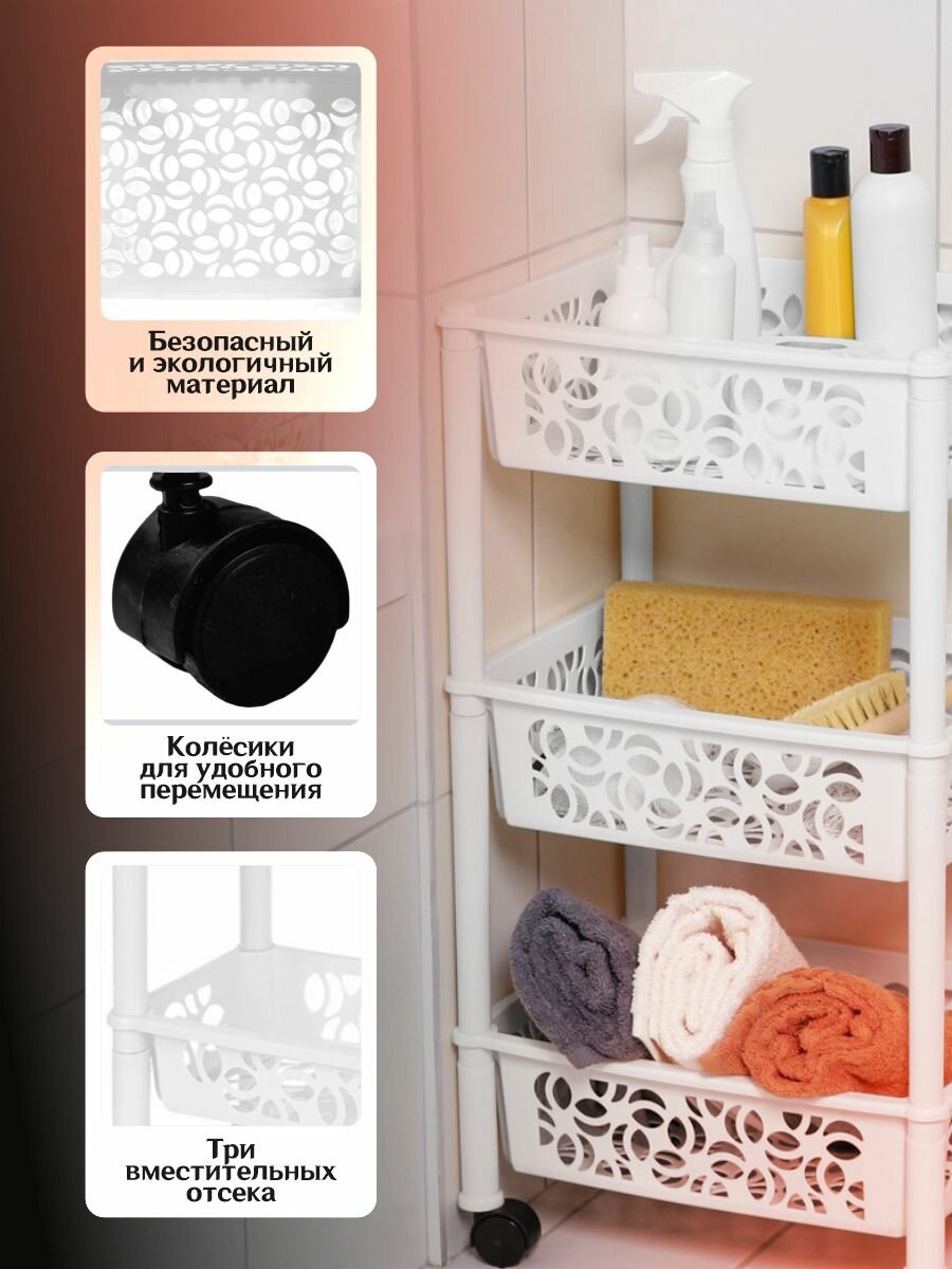 Этажерка Keeplex Light на колесиках 3-х секционная 37х29х69 см, (белое облако) 2828: сравнение цен, характеристики, фото, актуальное наличие и цены.
