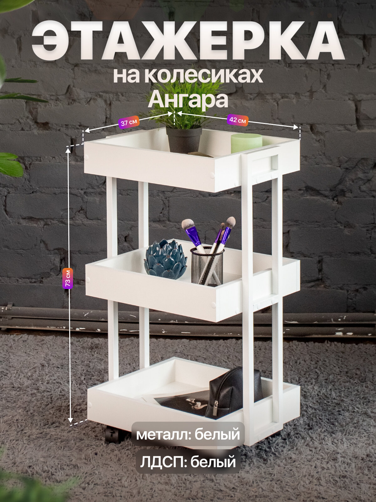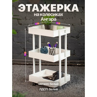 Этажерка на колесиках для дома и офиса в стиле лофт Ангара белый/белый: сравнение цен, характеристики, фото, актуальное наличие и цены.