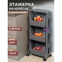 Купить Этажерка на колесиках Лофт 3 яруса, цвет серый / напольный органайзер для хранения на кухне, в ванной с доставкой по всей России.