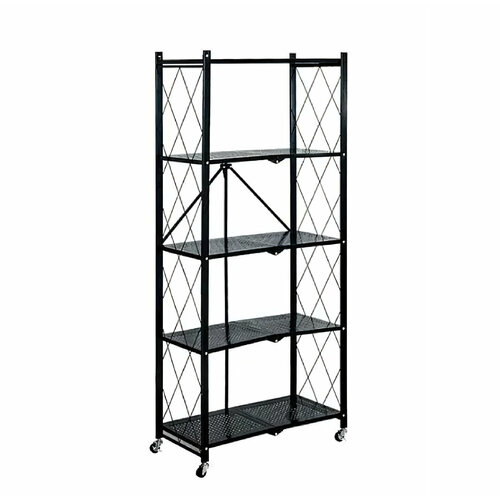 Купить Металлический стеллаж складной на колесиках, LettBrin , 5 полок, 73х40х160, 5 полок, черный с доставкой по всей России.