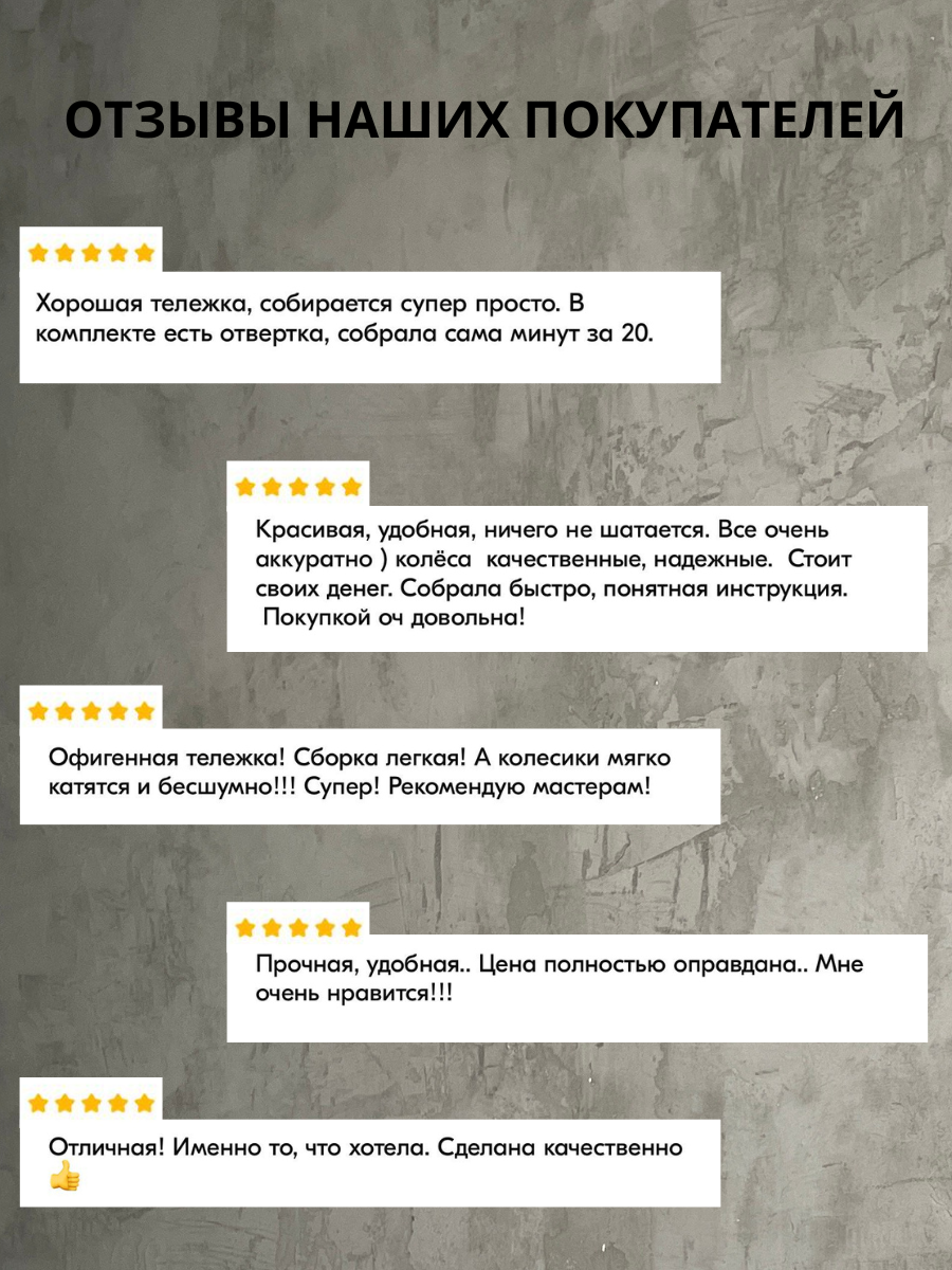 С учетом ваших пожеланий, мы продумали дизайн тележки, создав ее действительно универсальной и практичной без видимых крепежей и заглушек.