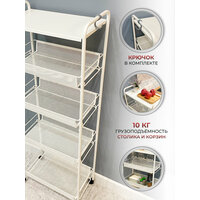 Этажерка на колесиках со столиком, для хранения вещей, мелочей, игрушек, полотенец, книг, цветов, аксессуаров, белый, 1 шт.