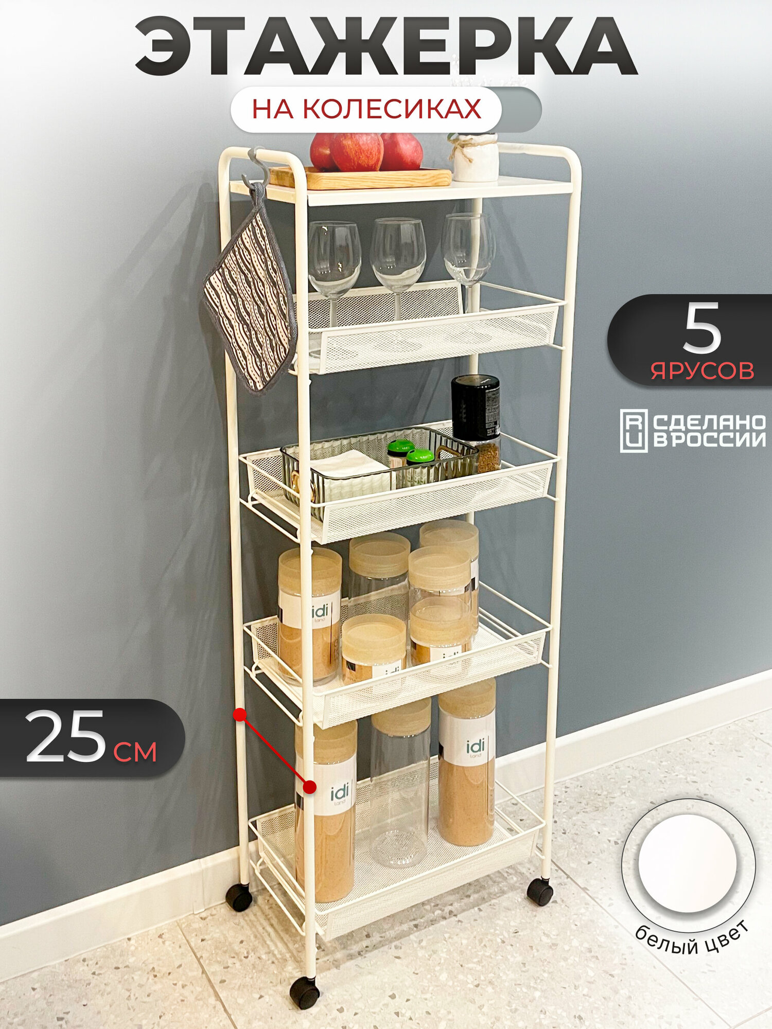 Купить Этажерка на колесиках со столиком, для хранения вещей, мелочей, игрушек, полотенец, книг, цветов, аксессуаров, белый, 1 шт. с доставкой по всей России.