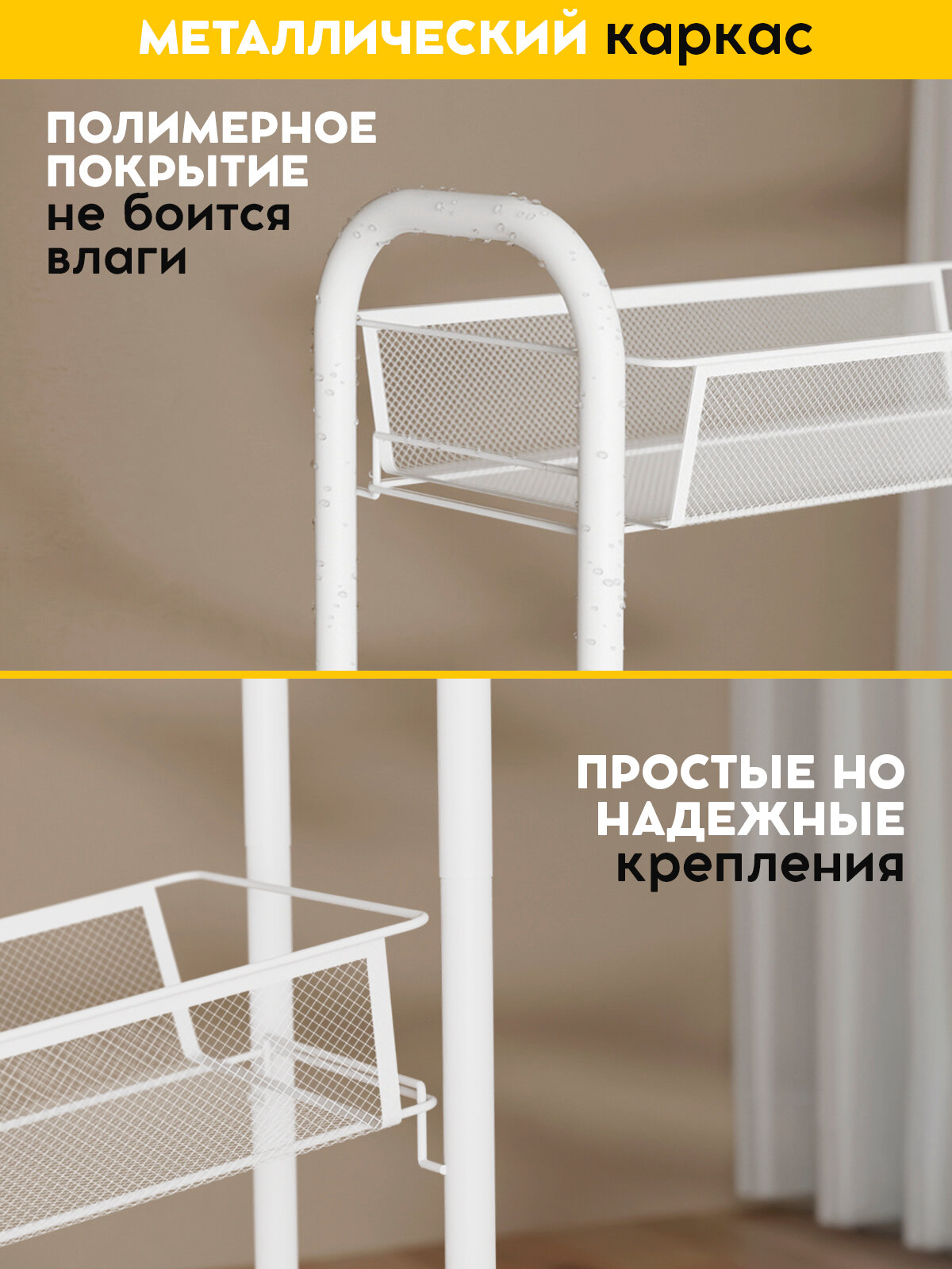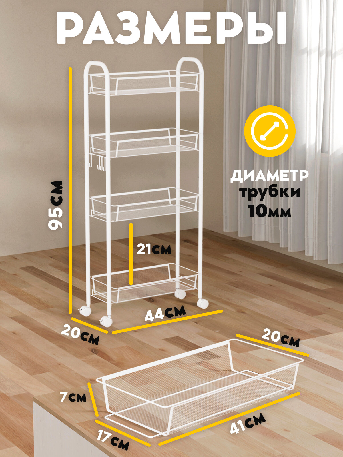 Этажерка на колесиках узкая напольная, металлическая Vidovito для ванной, кухни, 4 полки, 95х44х20 см, стеллаж белый: сравнение цен, характеристики, фото, актуальное наличие и цены.