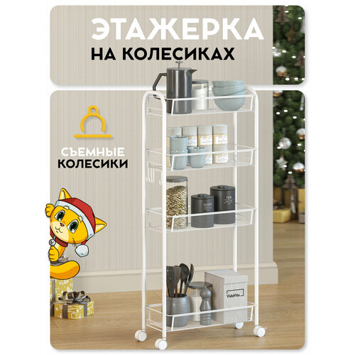Купить Этажерка на колесиках узкая напольная, металлическая Vidovito для ванной, кухни, 4 полки, 98,5х44х20 см, стеллаж белый с доставкой по всей России. Этажерка на колесиках узкая напольная, металлическая Vidovito для ванной, кухни, 4 полки, 98,5х44х20 см, стеллаж белый: сравнение цен, характеристики, фото, актуальное наличие и цены.