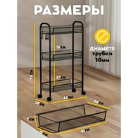 Этажерка на колесиках – идеальное решение для организации пространства в ванной и кухне. Этот стеллаж, выполненный в современном черном цвете, сочетает в себе стиль и функциональность. С размером 76*44*17 см он не займет много места, но при этом позволит разместить все необходимое под рукой.