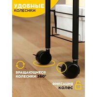 Не упустите возможность сделать вашу ванную или кухню более функциональной с помощью этой удобной этажерки! Она станет вашей верной помощницей в ежедневных заботах, улучшая комфорт и эстетику вашего дома. Полка на колесиках – это простое, но в то же время эффективное решение для хранения, которое позволит вам поддерживать порядок.