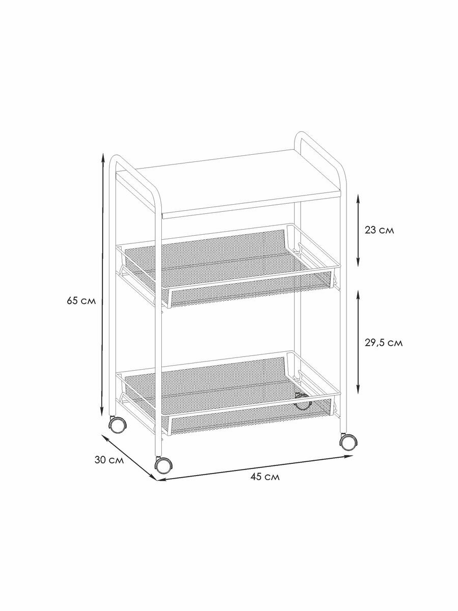 С размерами 30х45х65 см, этажерка занимает минимум места, что позволяет использовать ее даже в небольших помещениях.