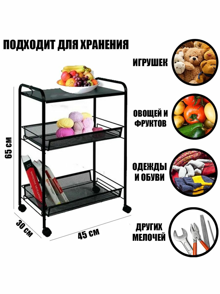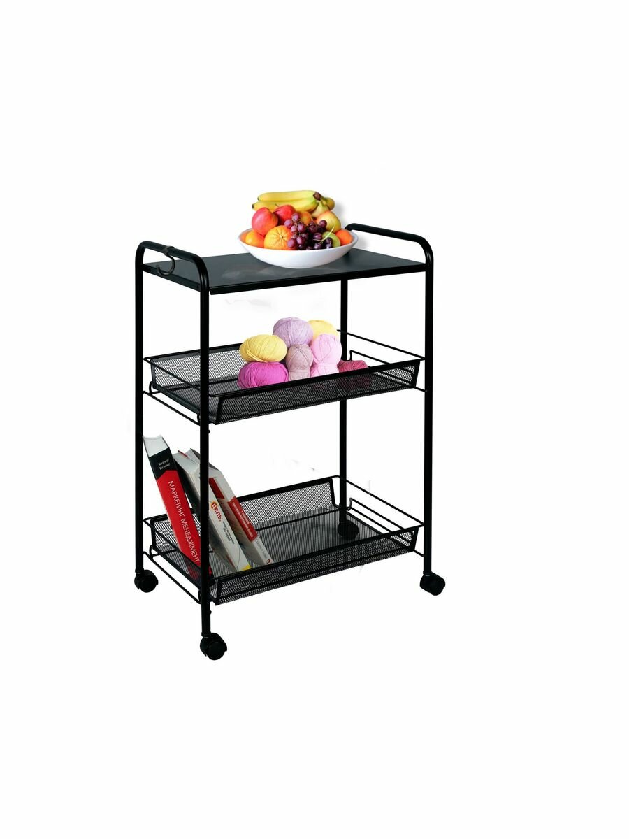 Черный цвет этажерки придает ей строгость и элегантность, что позволяет ей гармонично вписаться в любой интерьер.