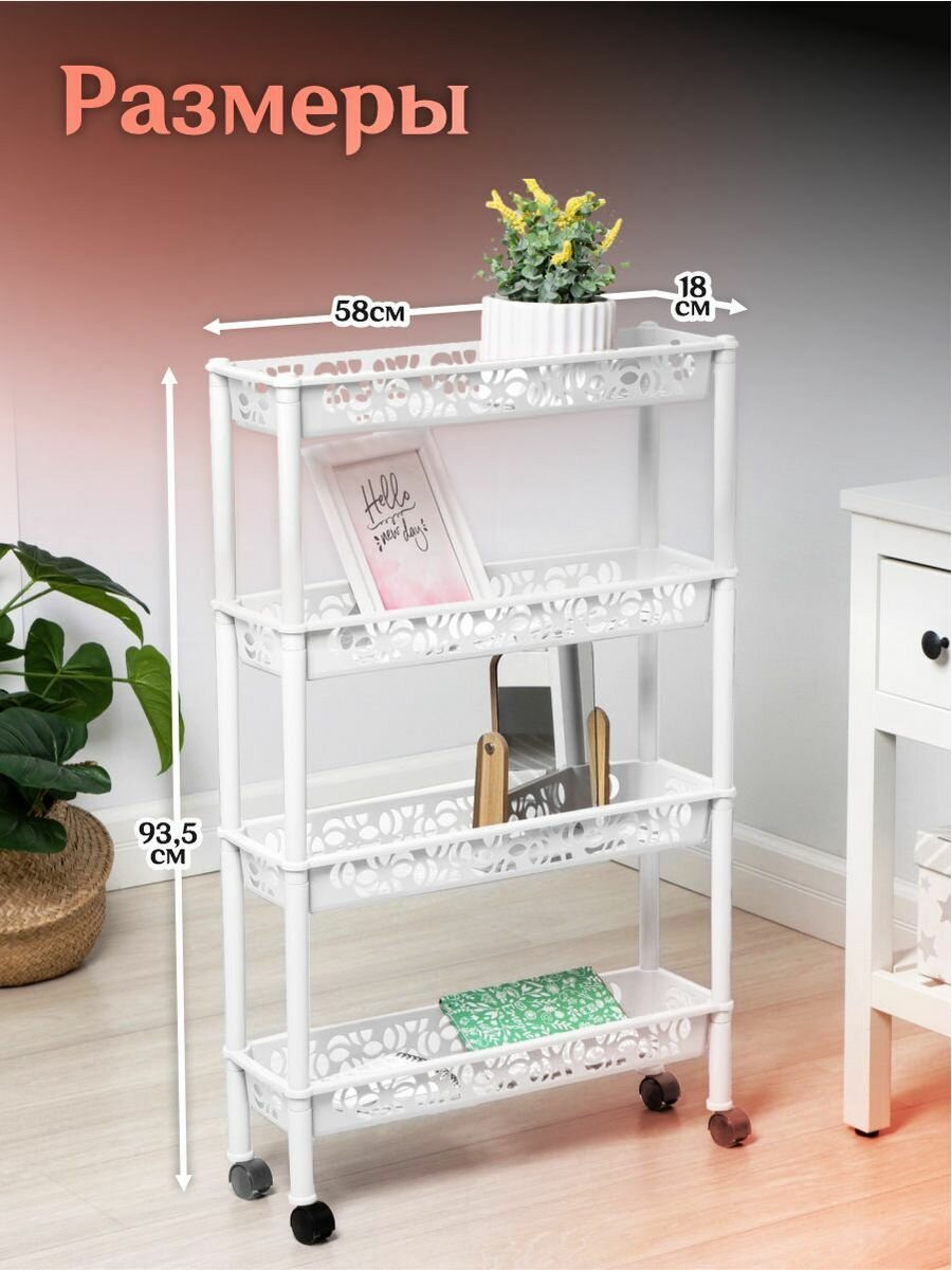 Этажерка Keeplex Light на колесиках 4-х секционная 58х18х93,5 см, (белое облако) 2831: сравнение цен, характеристики, фото, актуальное наличие и цены.