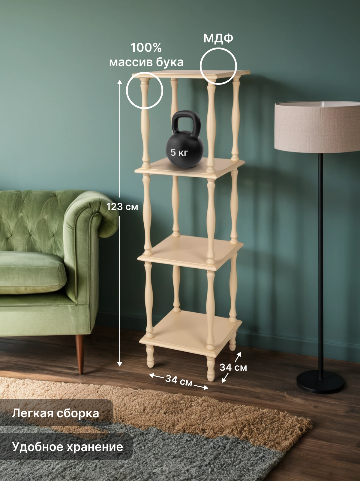 Этажерка PRIME (4 секции) - это современная классика для Вашего дома. Уютная и экологичная этажерка поможет организовать пространство дома, дачи или офиса. Габаритные размеры изделия: 340*340*1230мм. Ножки и стойки изготовлены из массива бука, полки из МДФ плиты. Выпускается в четырех цветах : венге, орех, слоновая кость и белая, что позволяет подобрать подходящее изделие под любой интерьер. Изделие упаковывается в индивидуальную коробку размером: 500*80*700мм. Вес изделия: 9 кг.