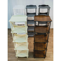 Стеллаж оснащен четырьмя полками из МДФ, изготовленными из березы, что гарантирует прочность и долговечность конструкции. Полки могут быть использованы для хранения книг, растений, а также различных предметов и аксессуаров.