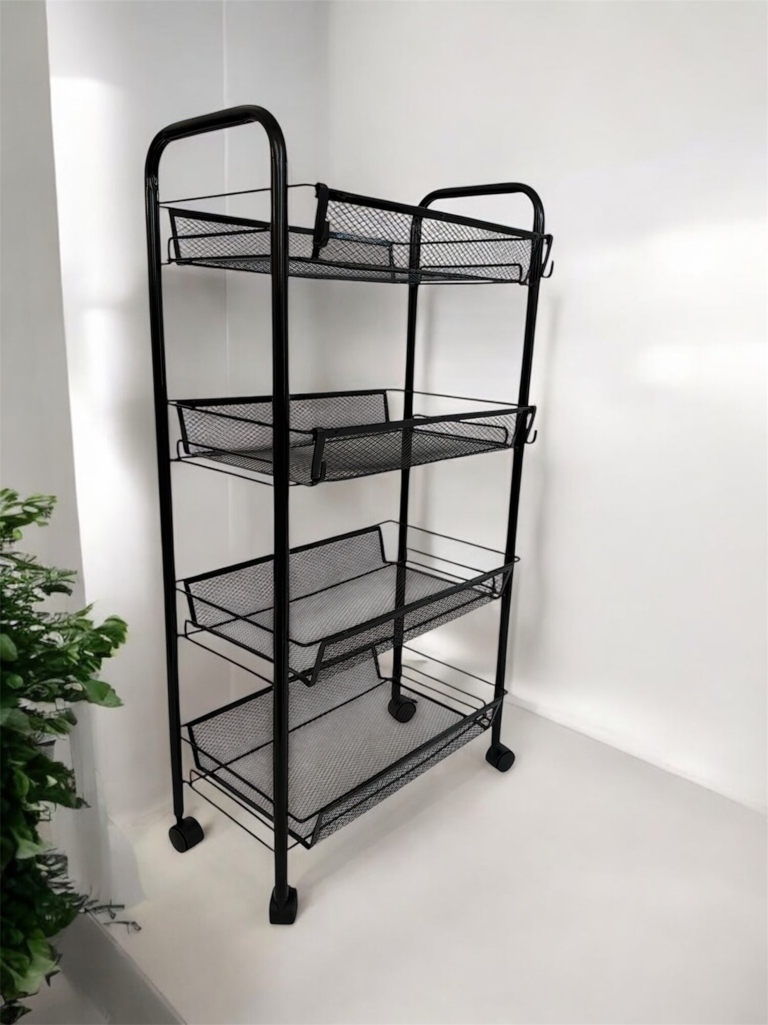 Купить Этажерка-стеллаж на колесиках , металлическая, 4 яруса, черная, для ванны и кухни с доставкой по всей России.