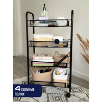 Этажерка-стеллаж на колесиках , металлическая, 4 яруса, черная, для ванны и кухни: сравнение цен, характеристики, фото, актуальное наличие и цены.