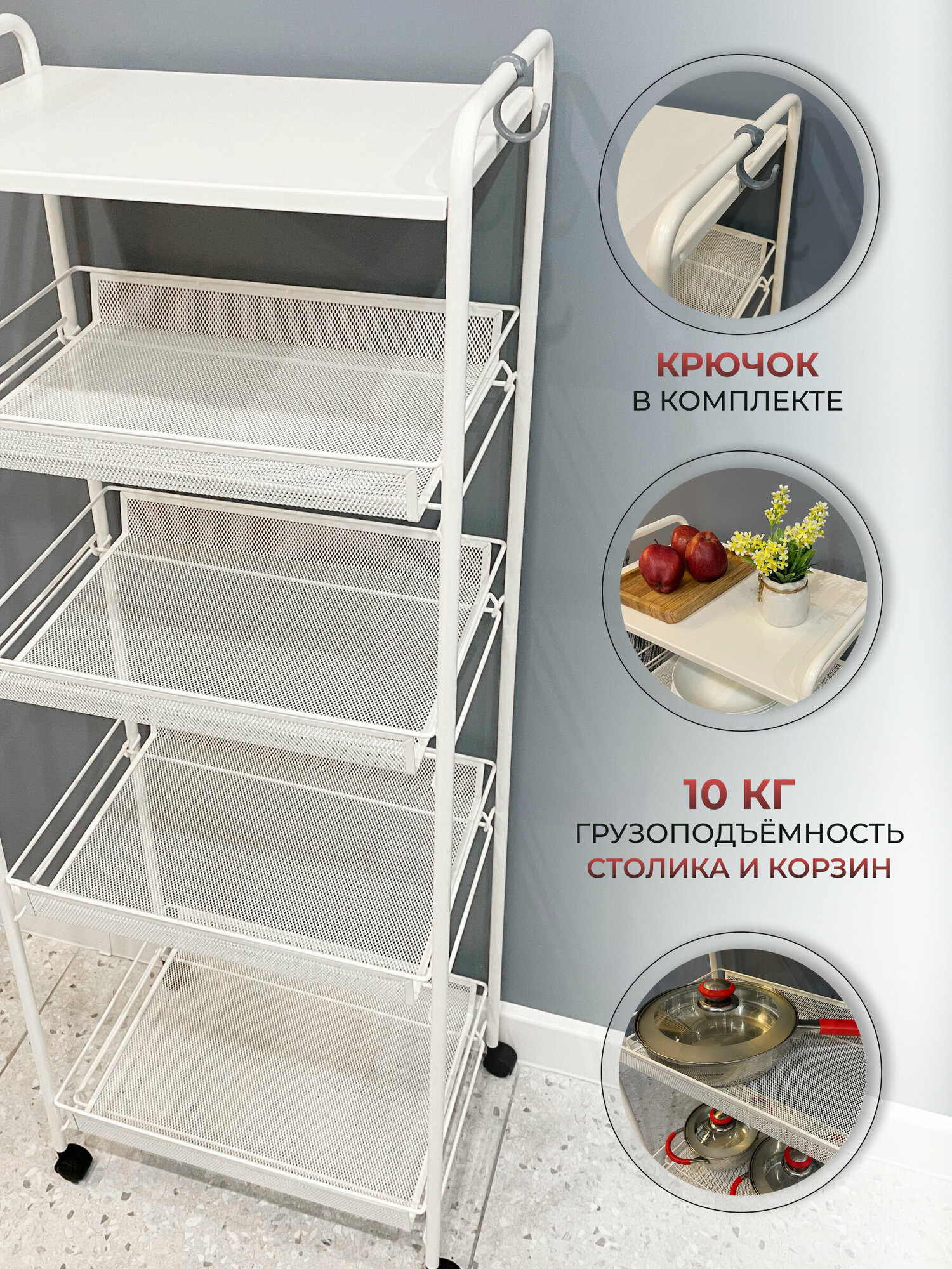 Этажерка, стеллаж на колесиках со столиком, для хранения вещей, мелочей, игрушек, полотенец, книг, цветов, белый, 1 шт.: сравнение цен, характеристики, фото, актуальное наличие и цены.