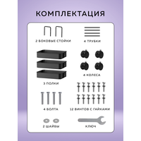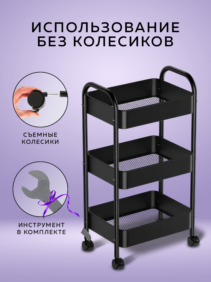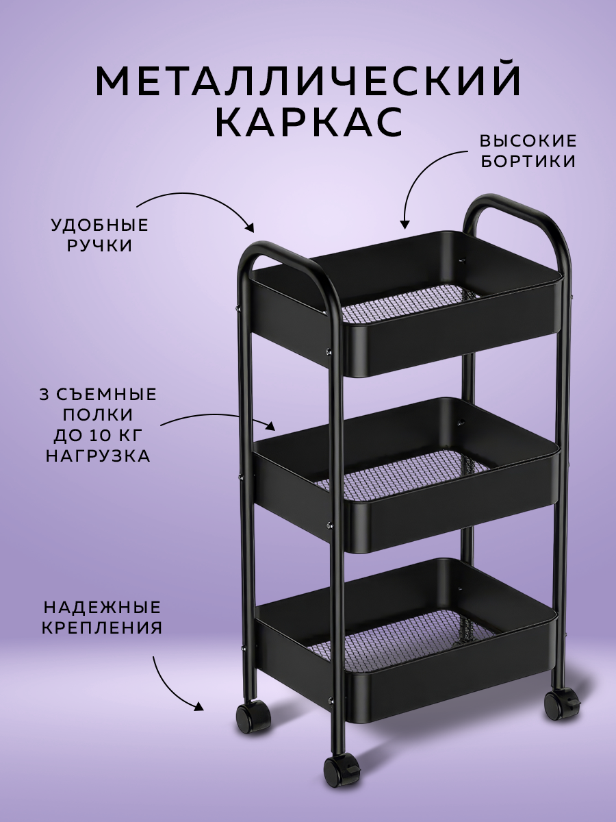 Этажерка универсальная на колесиках Ridberg 3-х ярусная, черная, для ванной, для кухни: сравнение цен, характеристики, фото, актуальное наличие и цены.