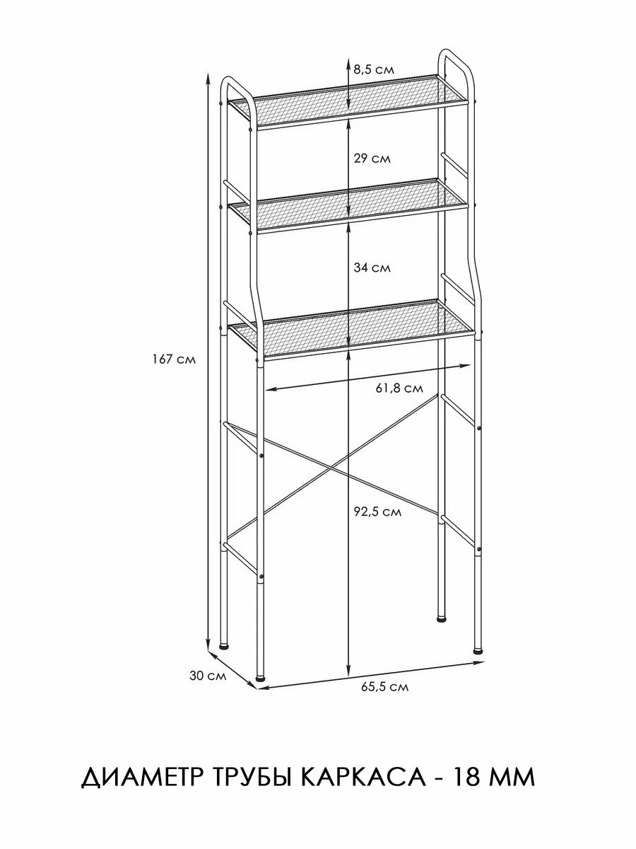 Многофункциональный и компактный стеллаж Атлантик 23 от российского производителя "ЗМИ" выполнен в современном стиле и поможет эффективно организовать ваше пространство в ванной комнате. Система хранения предназначена для хранения вещей над стиральной машиной и имеет 3 металлические сетчатые полки, каждая из которых выдерживает нагрузку до 8 кг. Этажерка с легкостью может заменить настенный шкафчик, при этом не требует крепления к стене. Идеально подходит для хранения одежды, полотенец, косметики и различных банок с химией. На ней идеально поместятся различные органайзеры и кофры, благодаря расстоянию между полочками. Регулируемыми ножками можно выровнять стеллаж на любой поверхности. Стеллаж долго прослужит владельцу, благодаря материалу, из которого изготовлен - металл и полимерно-порошковое покрытие. Конструкция разборная, собрать легко в домашних условиях. Вся фурнитура и инструменты в комплекте. Мебель продаётся напрямую от производителя, что гарантирует качество и выгодную цену. Расширенная гарантия от производителя составляет 3 года.