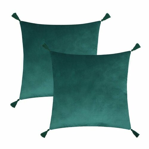 Набор декоративных наволочек «Этель» с кисточками, цвет зелёный, 45х45 см - 2 шт, полиэстер, велюр.