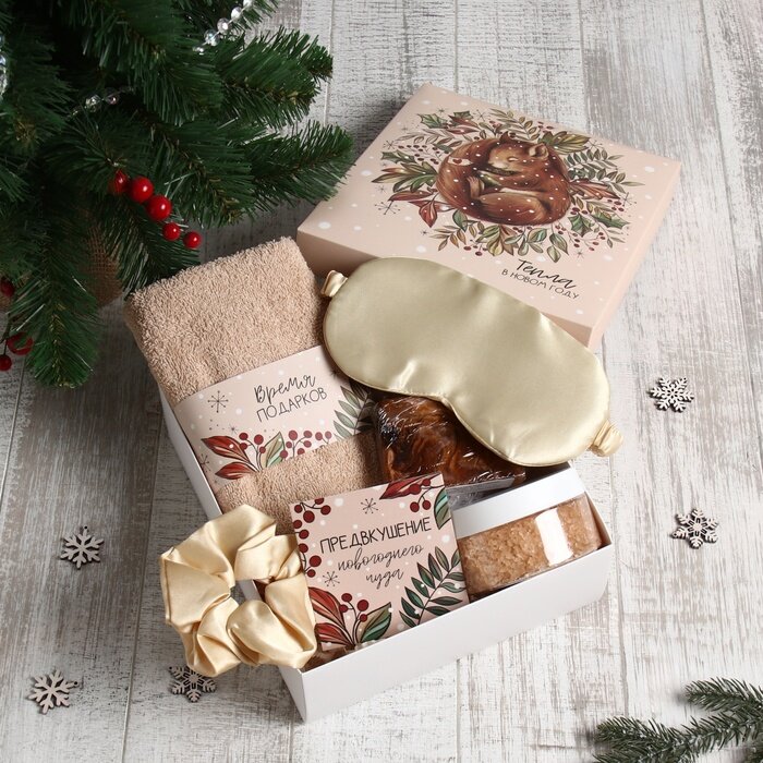 Купить Этель Набор новогодний подарочный «Этель. Бельчонок», 6 предметов, полотенце 30×60 см, маска для сна, резинка с доставкой по всей России.