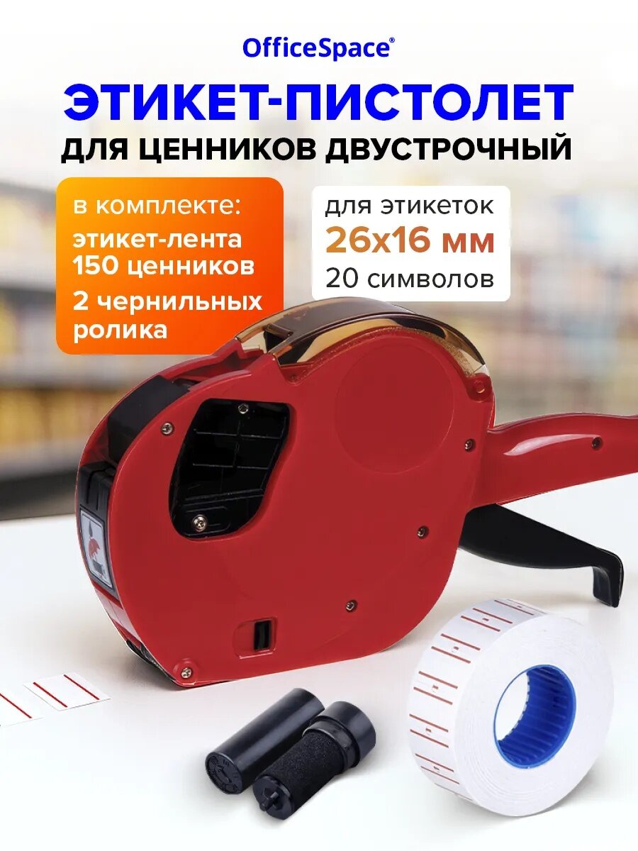 Этикет-пистолет OfficeSpace двустрочный, прямоугольная и волнистая лента, 20 символов, 26*16мм: сравнение цен, характеристики, фото, актуальное наличие и цены.