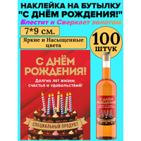 Этикетка наклейка на бутылку МастерВар "С днем рождения", 7*9 см, пленка, на коробку, 100 штук