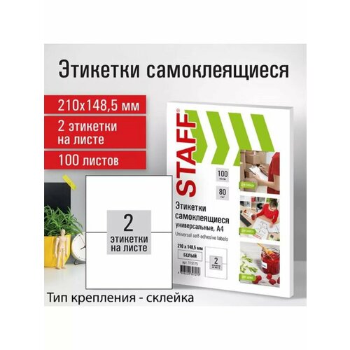 Купить Этикетка самоклеящаяся 210х148,5 мм, 2 этикетки, белая, 80 г/м2, 100 листов, STAFF, 115175 с доставкой по всей России. Этикетка самоклеящаяся 210х148,5 мм, 2 этикетки, белая, 80 г/м2, 100 листов, STAFF, 115175: сравнение цен, характеристики, фото, актуальное наличие и цены.