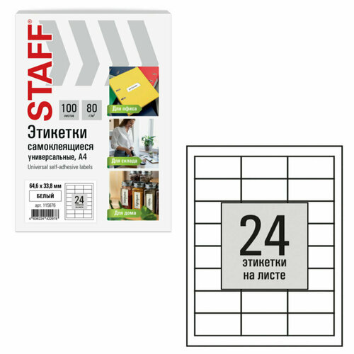 Купить Этикетка самоклеящаяся 64,6х33,8 мм, 24 этикетки, белая, 80 г/м2, 100 листов, STAFF BASIC, 115676, 115676 с доставкой по всей России. Этикетка самоклеящаяся 64,6х33,8 мм, 24 этикетки, белая, 80 г/м2, 100 листов, STAFF BASIC, 115676, 115676: сравнение цен, характеристики, фото, актуальное наличие и цены.