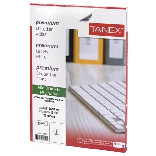 Купить Этикетка самоклеящаяся глянцевая 210х297 мм, 1 этикетка, белая, 80 г/м2, 100 листов, TANEX, 114547, TW-2000 с доставкой по всей России. Этикетка самоклеящаяся глянцевая 210х297 мм, 1 этикетка, белая, 80 г/м2, 100 листов, TANEX, 114547, TW-2000: сравнение цен, характеристики, фото, актуальное наличие и цены.