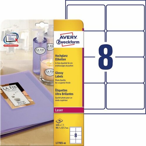 Этикетки Avery Zweckform [L7765-40] самоклеящиеся глянцевые для лазерных принтеров (99.1×67.7 мм, 160 шт, 40 листов): сравнение цен, характеристики, фото, актуальное наличие и цены.