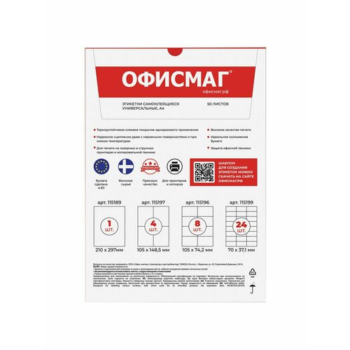 Купить Этикетки наклейки самоклеящиеся 105х148,5 мм, 4 этикетки, белые, 70г/м2, 50 листов Офисмаг, 115197 с доставкой по всей России. Этикетки наклейки самоклеящиеся 105х148,5 мм, 4 этикетки, белые, 70г/м2, 50 листов Офисмаг, 115197: сравнение цен, характеристики, фото, актуальное наличие и цены.