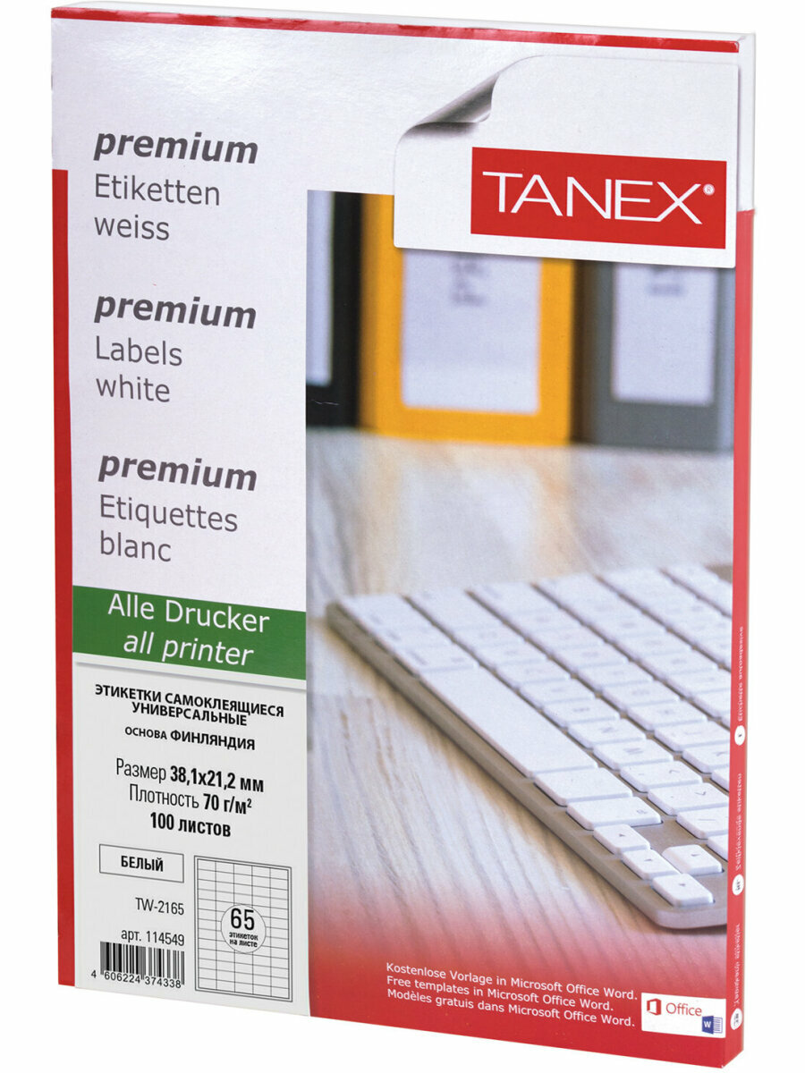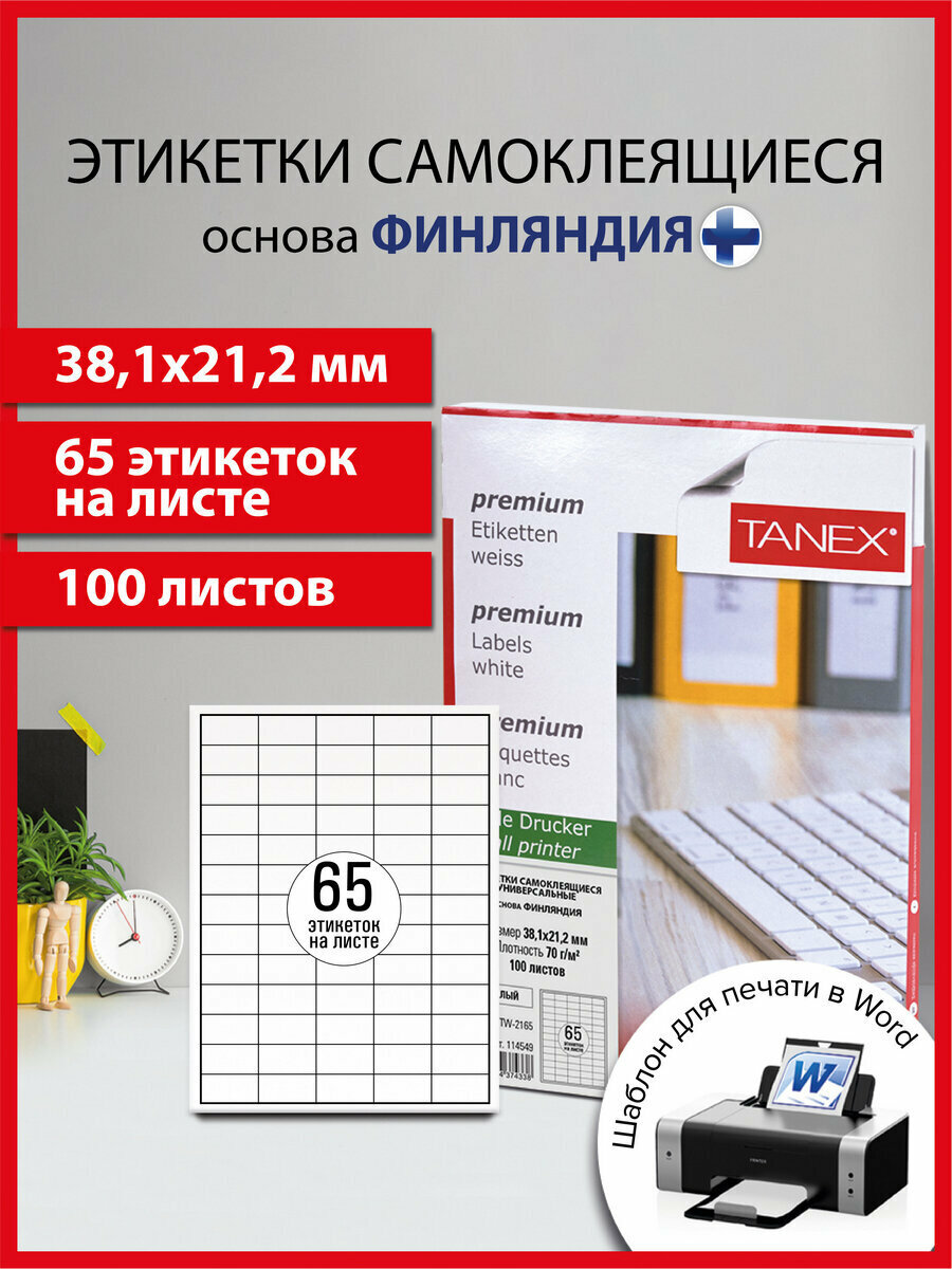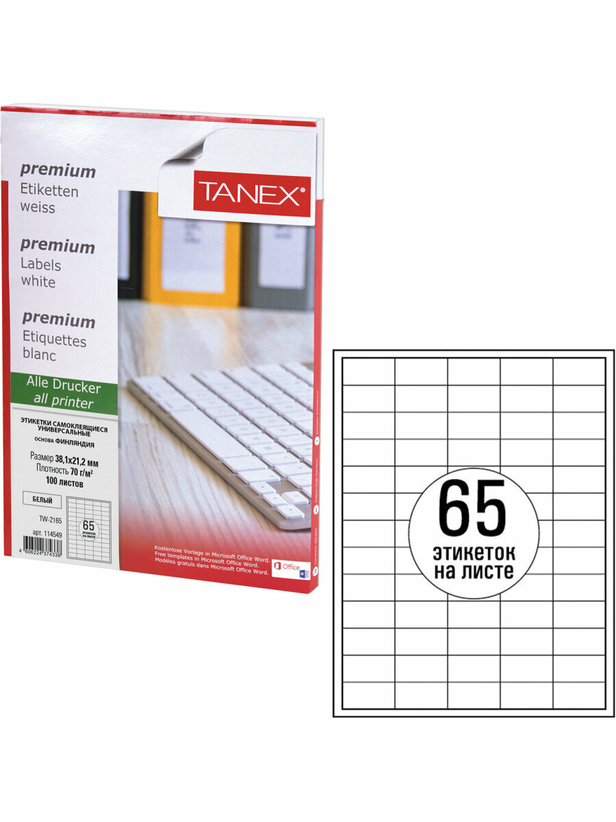 Этикетки / наклейки самоклеящиеся 38,1х21,2 мм, 65 этикеток, белая, 70 г/м2, 100 листов, Tanex, 114549: сравнение цен, характеристики, фото, актуальное наличие и цены.