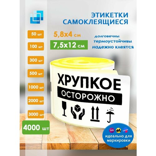 Рулон белых самоклеящихся стикеров " Осторожно, хрупкое ". Глянцевый материал этикетки позволяет хорошо разглядеть наклейку на различных поверхностях, например картонные коробки и пластиковые упаковки. Благодаря наклейкам поставщики Яндекс и не только смогут предупредить работников транспортных компаний о хрупкости своего товара и сохранить его в целости. Наклейки подходят также для бытового использования: для хрупких банок и бутылок.