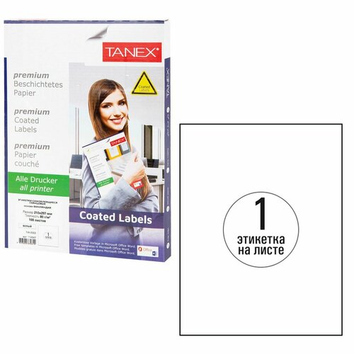 Этикетки самоклеящиеся глянцевые Tanex (210х297мм, 1шт. на листе А4, белые, 80 г/кв. м, 100 листов) (TW-2000), 10 уп.: сравнение цен, характеристики, фото, актуальное наличие и цены.