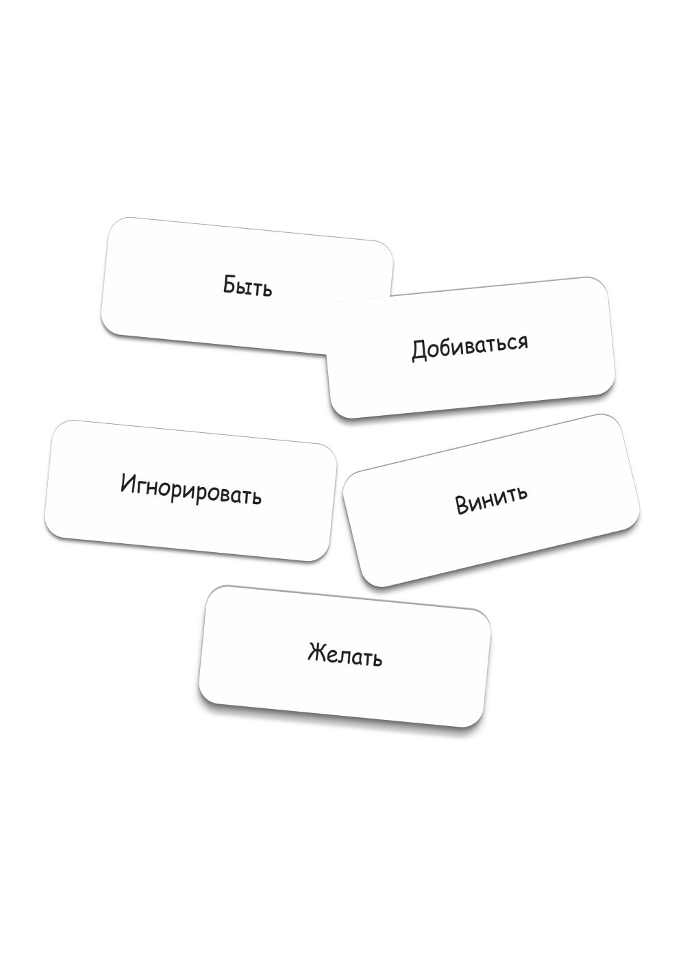 64 карты с рисунками, 64 карточки с глаголами, инструкция