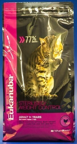 Купить Eukanuba Adult Sterilised / Weight Control — Сухой корм для кастрированных кошек (1,5 кг) с доставкой по всей России. Eukanuba Adult Sterilised / Weight Control — Сухой корм для кастрированных кошек (1,5 кг): сравнение цен, характеристики, фото, актуальное наличие и цены.