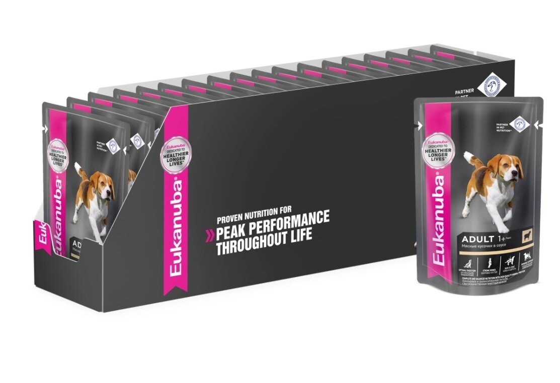 Сочетание влажного и сухого рационов - залог здоровья собаки. Влажные рационы способствуют профилактике мочекаменной болезни, поддерживают оптимальный водный баланс, снижают риск ожирения, а так же помогают обеспечить разнообразие питания собак. Включайте влажные рационы Eukanuba в ежедневное питание вашего питомца!