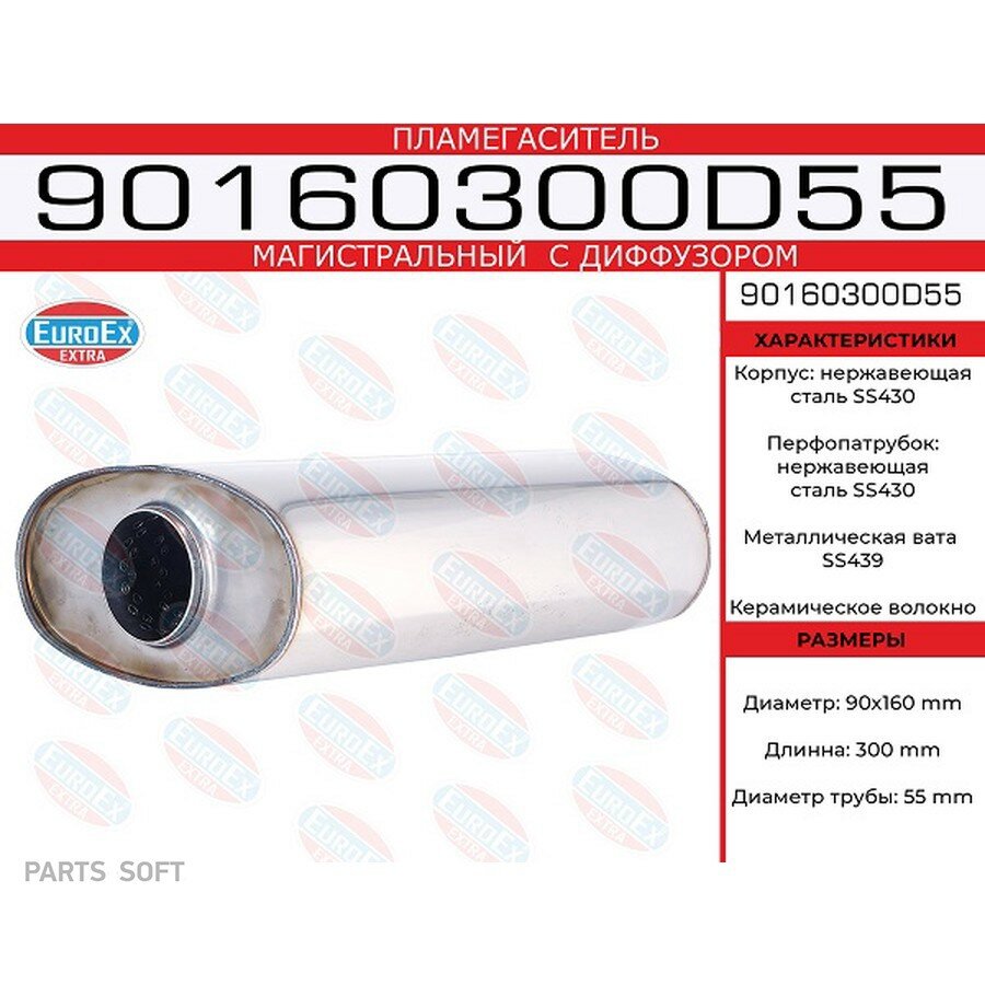 EUROEX 90160300D55 Пламегаситель магистральный овал. с диф. 90x160x300 нерж.: сравнение цен, характеристики, фото, актуальное наличие и цены.