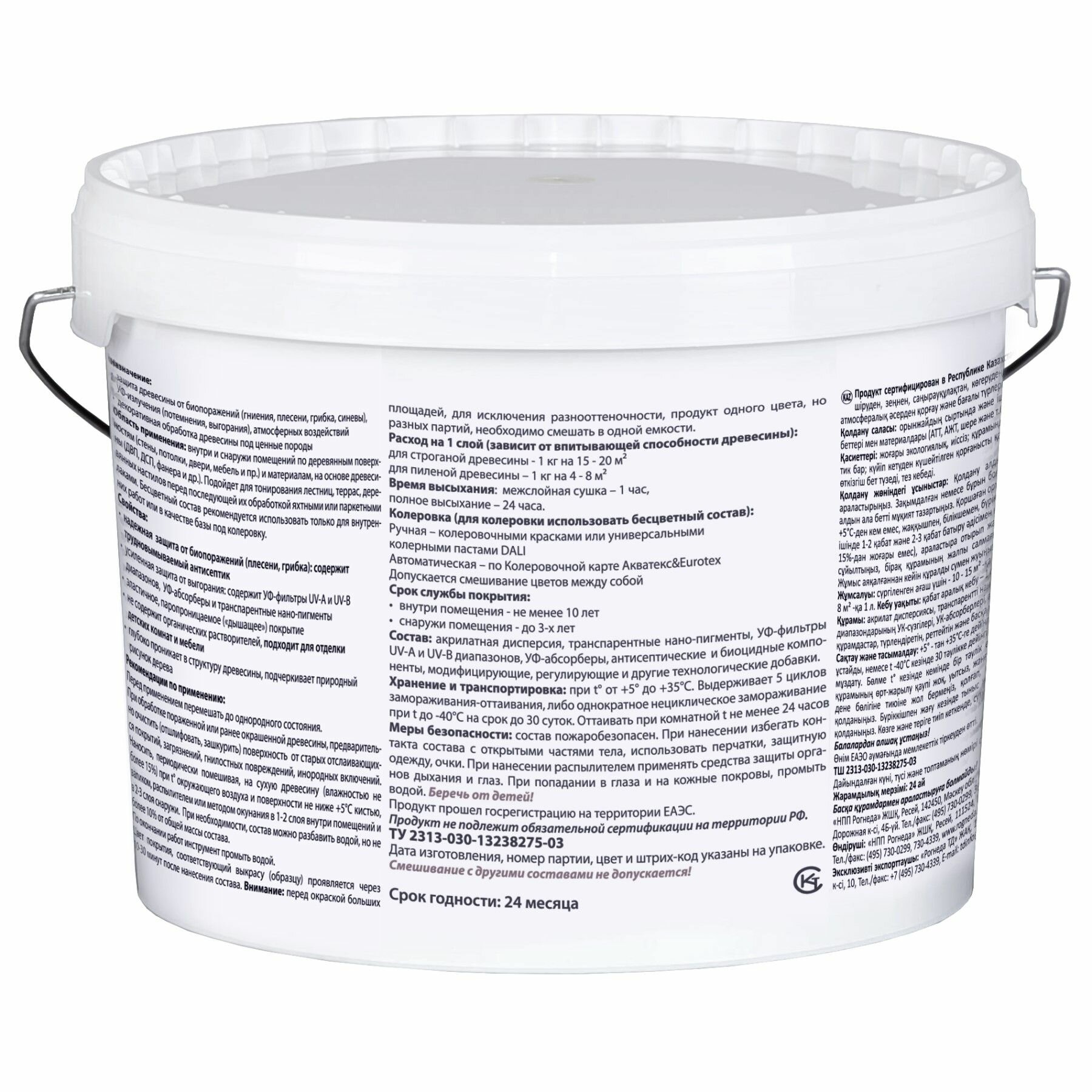 разбавление допускается, но не более 10% от общей массы состава; температура применения от +5°С, относительная влажность воздуха менее 80%; допустимая влажность древесины до 15%; межслойная сушка – 1 час