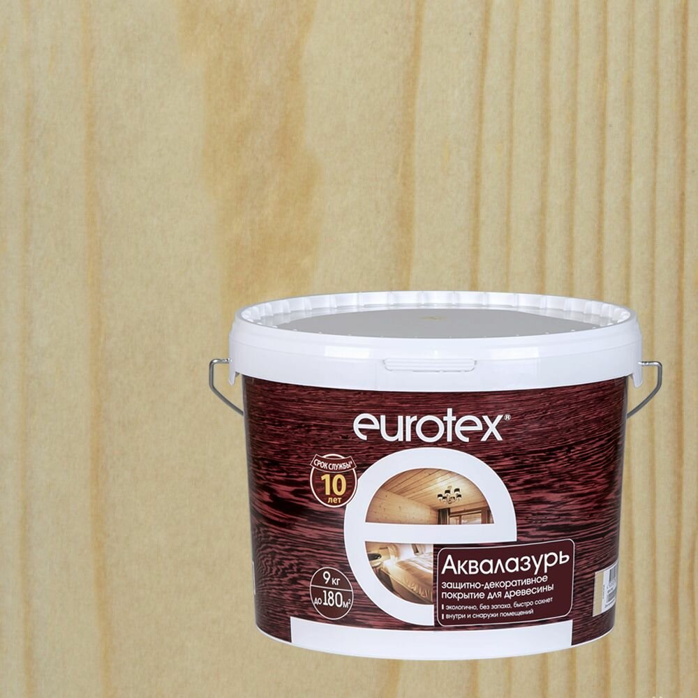 Купить Лак защитно-декоративный для дерева Eurotex Аквалазурь (9кг) бесцветный с доставкой по всей России. Лак защитно-декоративный для дерева Eurotex Аквалазурь (9кг) бесцветный: сравнение цен, характеристики, фото, актуальное наличие и цены.