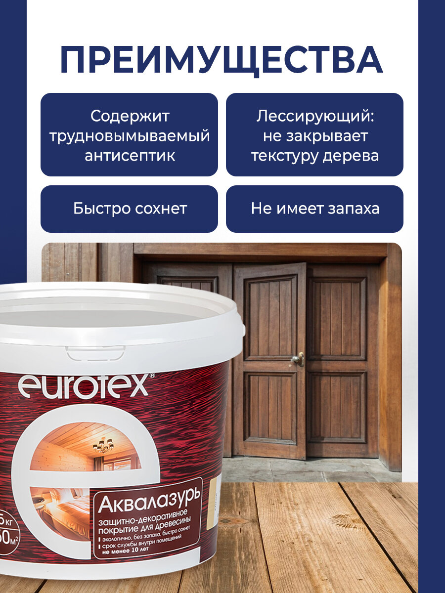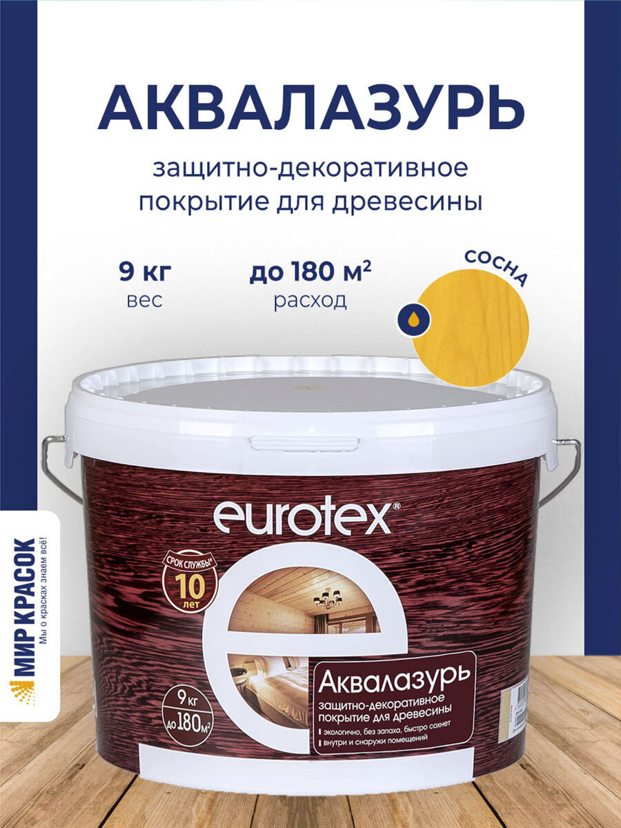 Eurotex Аквалазурь лак защитно-декор. для дерева акриловый лессирующий, сосна (9л): сравнение цен, характеристики, фото, актуальное наличие и цены.