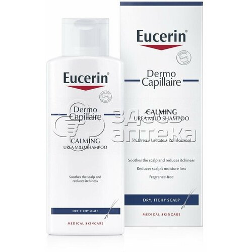 Успокаивающий шампунь для взрослых и детей Eucerin DermoCapillaire обеспечивает питание и уход сухой зудящей коже головы благодаря натуральным увлажняющим факторам, уменьшающим потерю влаги. Входящий в состав шампуня полидоканол уменьшает зуд и раздражение кожи.