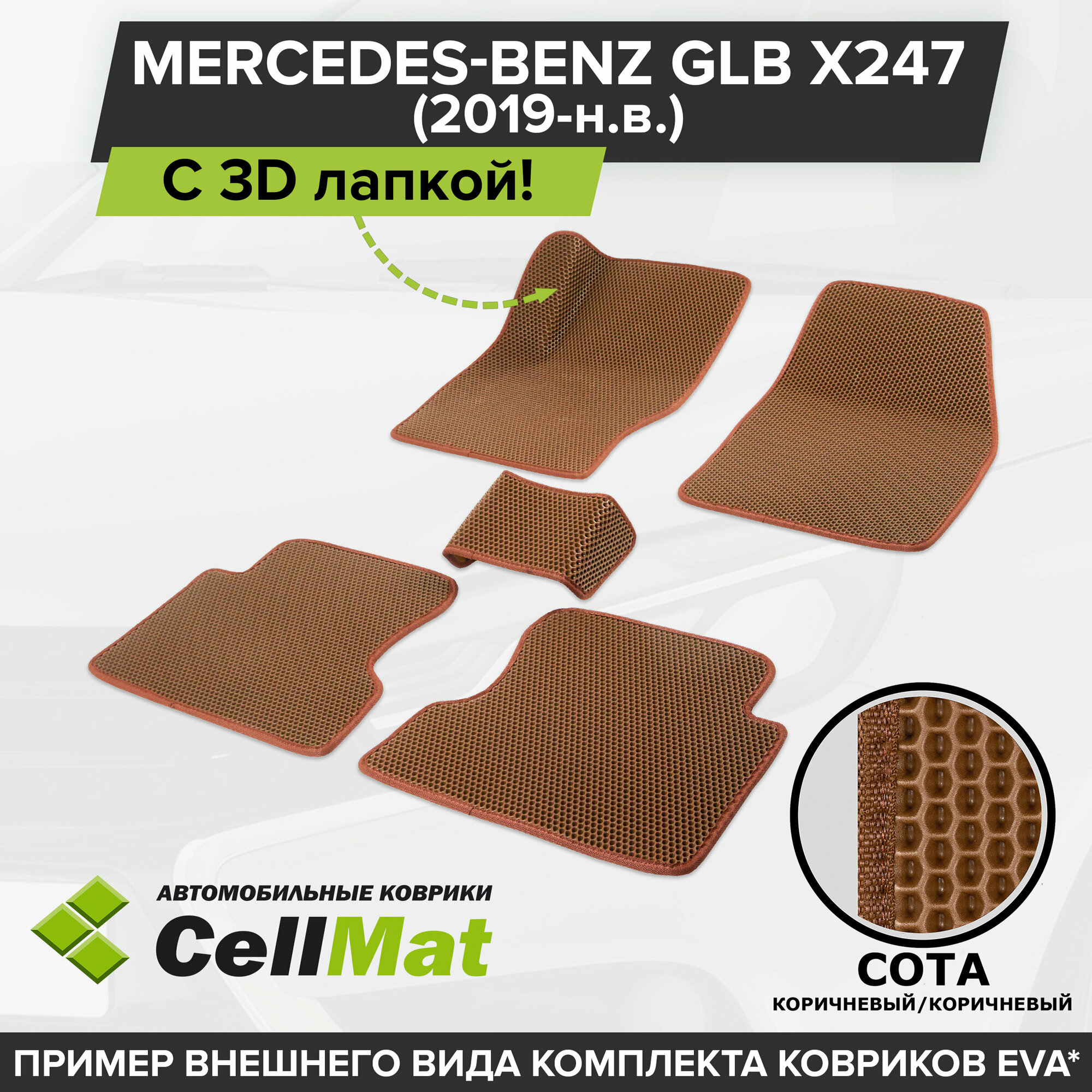 Купить ЭВА ЕВА EVA коврики CellMat в салон c 3D лапкой для Mercedes-Benz GLB X247, Мерседес Бенц GLB, 2019-н. в. с доставкой по всей России.