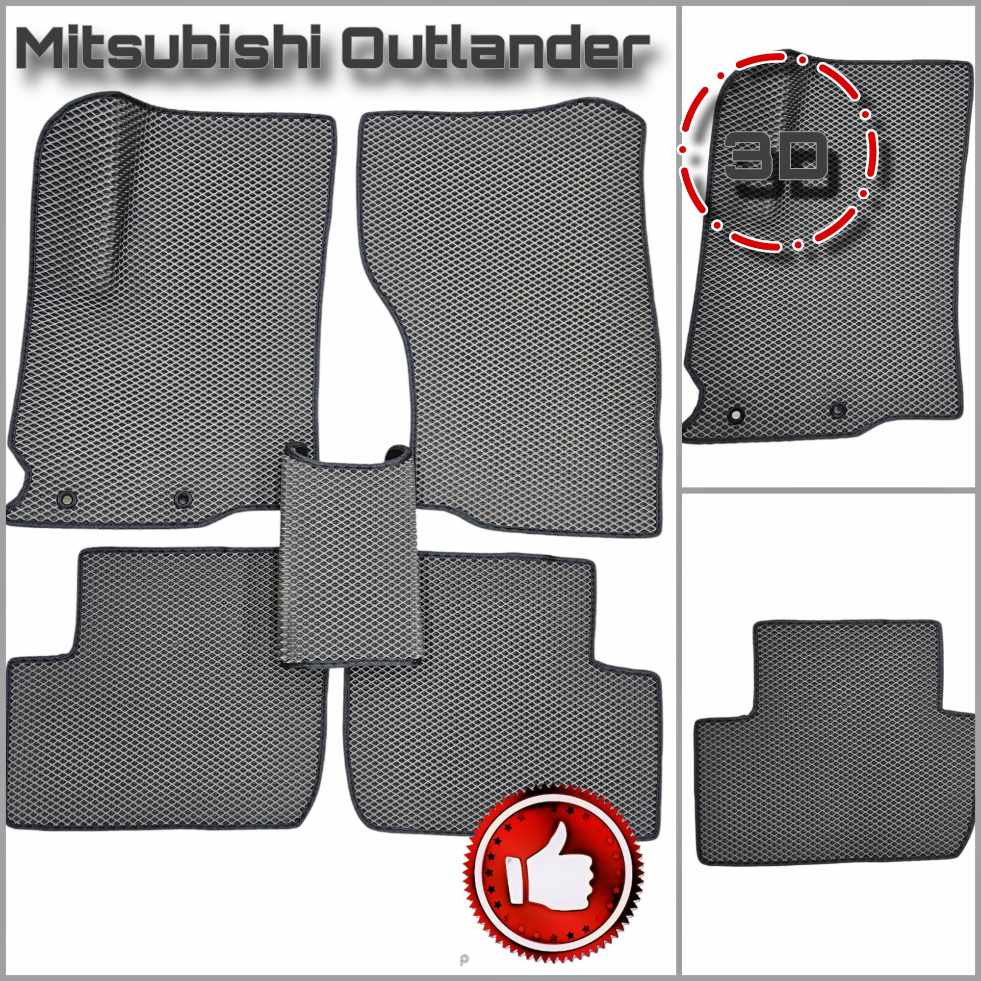 ЭВА(ЕВА) Eva коврики для Митсубиси Аутлендер 3, Аутлендер 2XL/Mitsubishi Outlander III 2012-2022г, Outlander II XL (2005-2012г. в.)