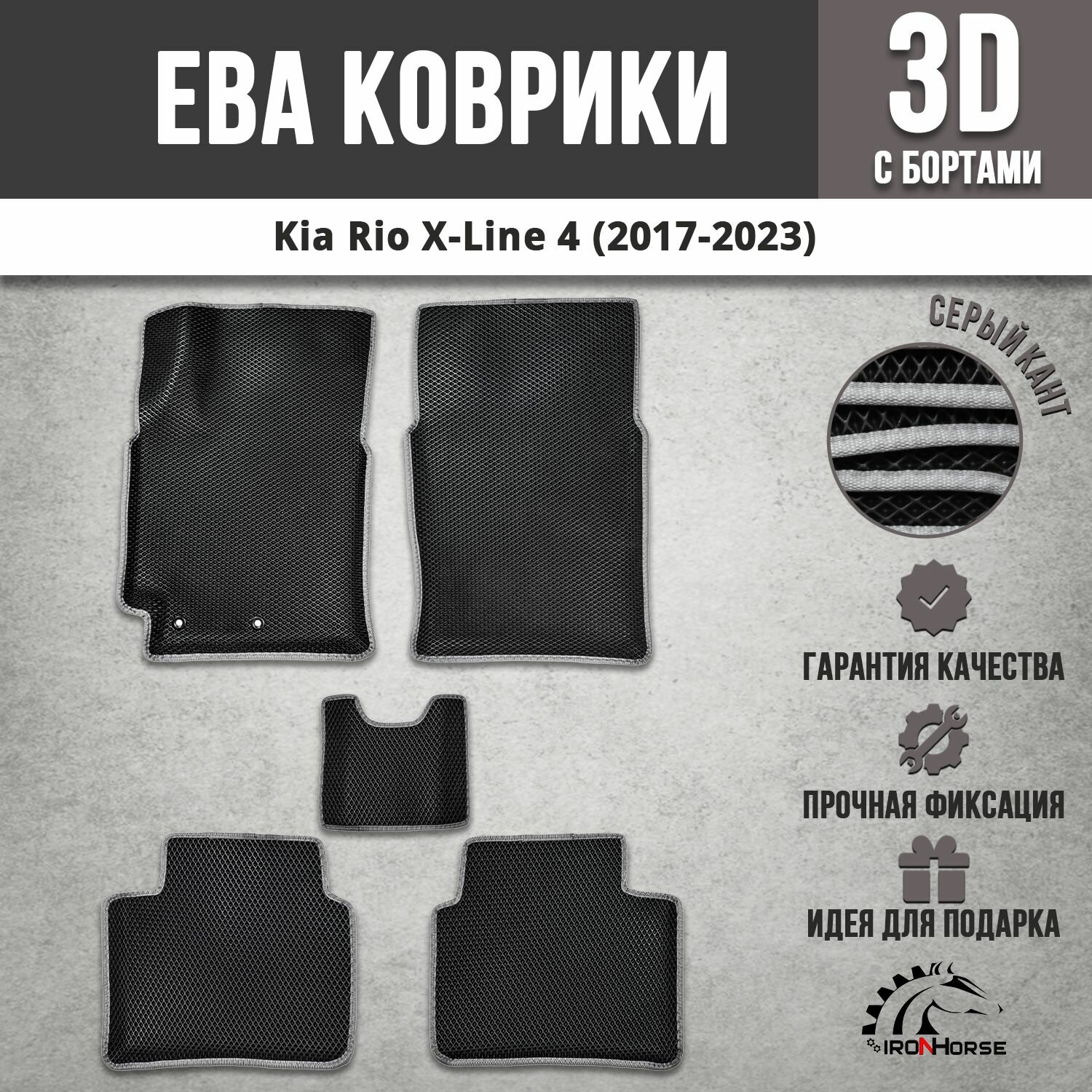 EVA (EВА, ЭВА) коврики с бортами в салон автомобиля Киа Рио Икс Лайн 4 / Kia Rio X-Line 4 (2017-2023) черные / серый кант: сравнение цен, характеристики, фото, актуальное наличие и цены.