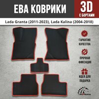 Купить EVA (EВА, ЭВА) коврики с бортами в салон автомобиля Лада Гранта / Lada Granta (2011-2023), Лада Калина / Lada Kalina (2004-2018) черные / красный кант с доставкой по всей России.