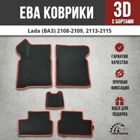 Купить EVA (EВА, ЭВА) коврики с бортами в салон автомобиля Лада (ВАЗ) / LADA (VAZ) 2108-2109, 2113-2115 черные / красный кант с доставкой по всей России.