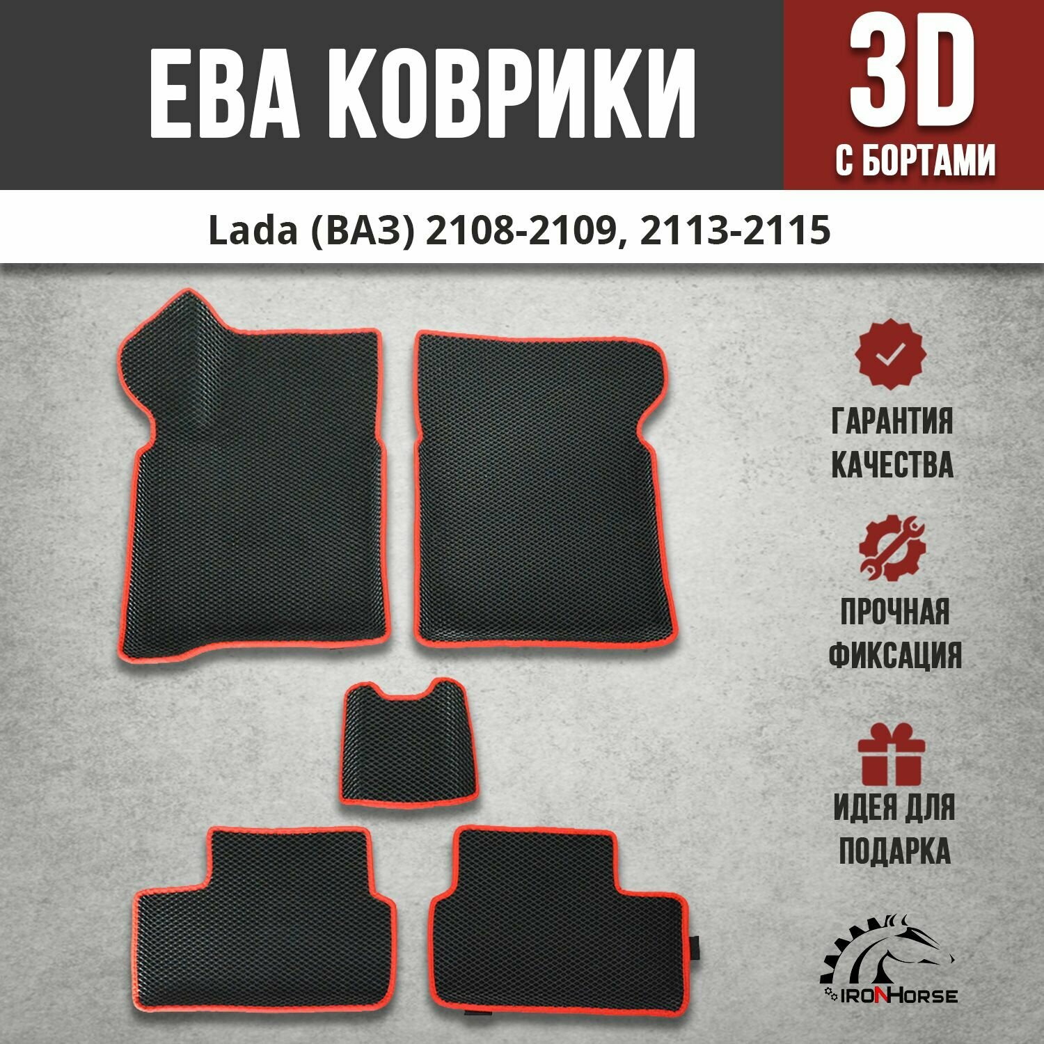 EVA (EВА, ЭВА) коврики с бортами в салон автомобиля Лада (ВАЗ) / LADA (VAZ) 2108-2109, 2113-2115 черные / красный кант: сравнение цен, характеристики, фото, актуальное наличие и цены.