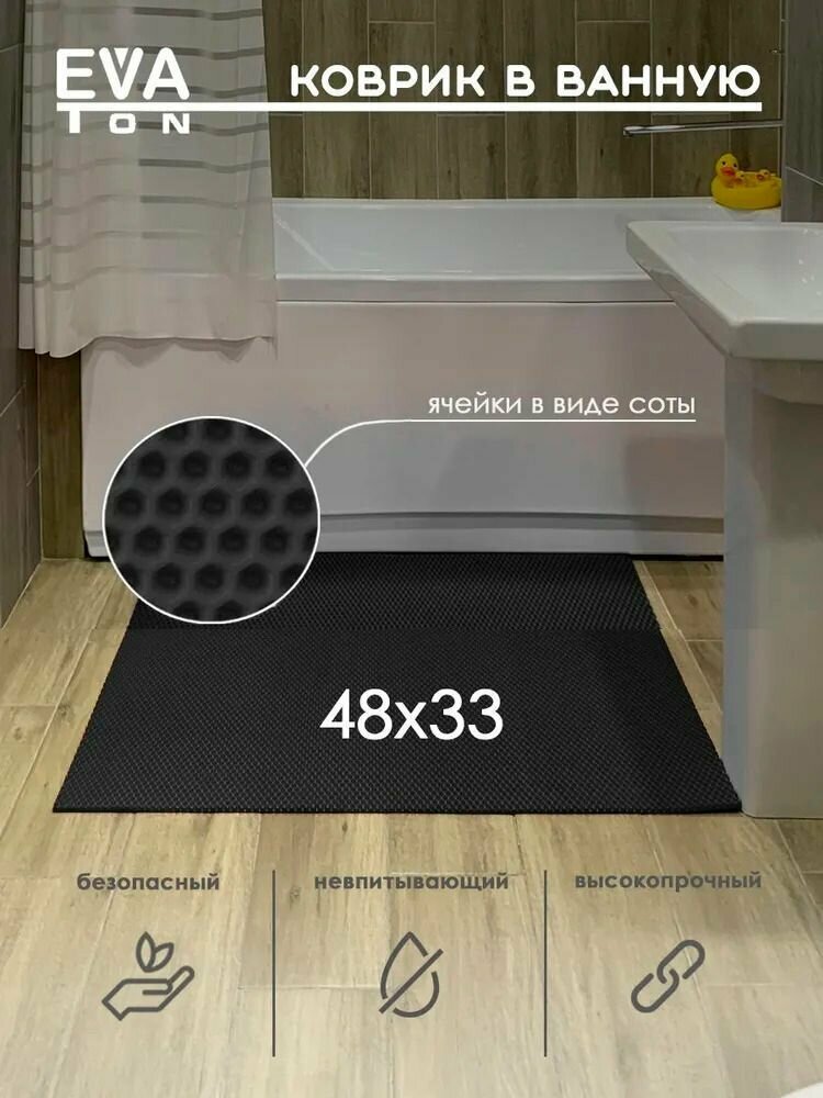 EVA Эва коврик в ванную комнату и туалет, 48х33см универсальный, Ева Эво ковер Соты черный: сравнение цен, характеристики, фото, актуальное наличие и цены.