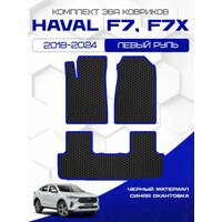 Эва коврики для Haval F7/F7x 2018 - 2024, черный с синим кантом ( Хавал Ф7 / Ф7х 2018 -2024 ) Eva, Ева