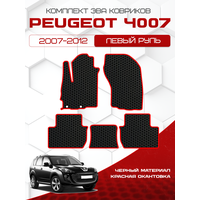 Купить Эва коврики для Peugeot 4007 2007-2012 Левый руль, черный с красной окантовкой(Пежо 4007 2007-2012) Eva, Ева с доставкой по всей России.